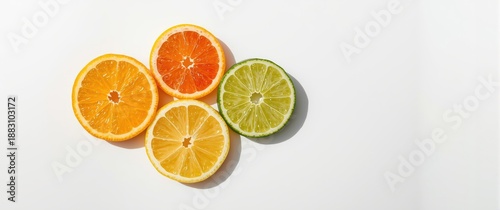 Fototapeta premium Colorful citrus slices arranged on a white background, clipping path included