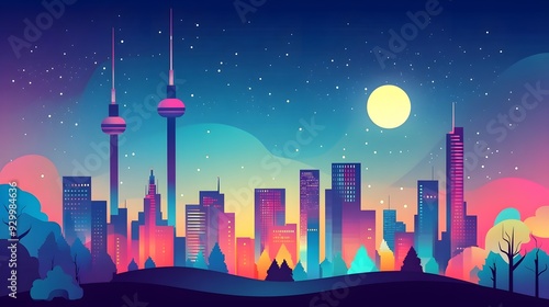 Fototapeta premium Colorful City Skyline Night Illustration