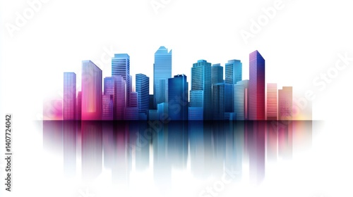 Fototapeta premium Colorful city skyline reflection on white background