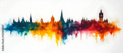 © Pumapala, Obraz premium Colorful city skyline, watercolor art