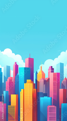 © ma, Fototapeta premium Colorful city skyline with tall buildings