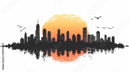 Fototapeta premium Colorful Cityscape Skyline at Sunset with Urban Silhouettes and Reflection