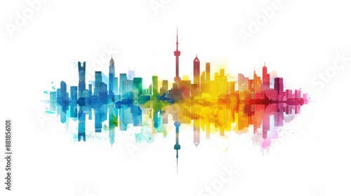 © Photock Agency, Obraz premium Colorful Cityscape Watercolor Painting