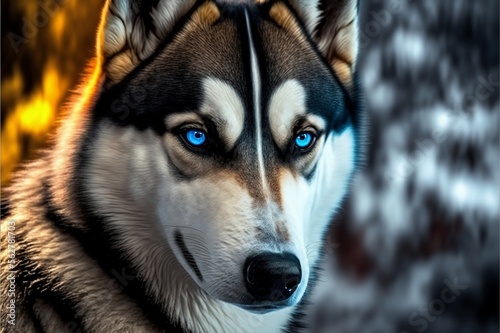 Obraz premium Colorful Close-Up of a Husky. Created by Generative AI