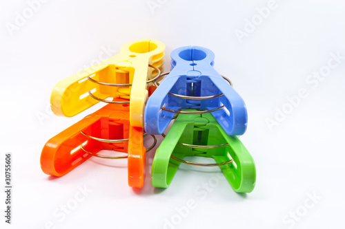 © naratip1972, Fototapeta premium Colorful clothes pegs isolated on white background