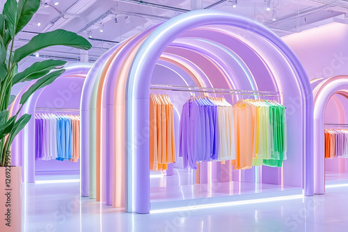 Obraz premium Colorful Clothing Store Interior with Neon Archways