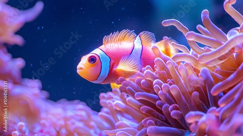 Naklejka premium Colorful Clownfish Community in Vibrant Underwater Reef Ecosystem