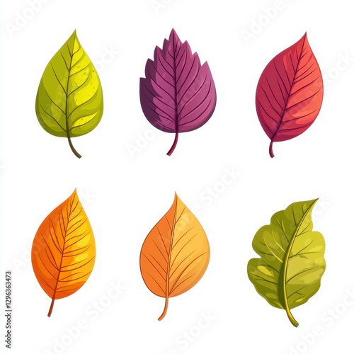 © Jamlong, Obraz premium Colorful Collection of Abstract Leaves in Various Shapes and Shades