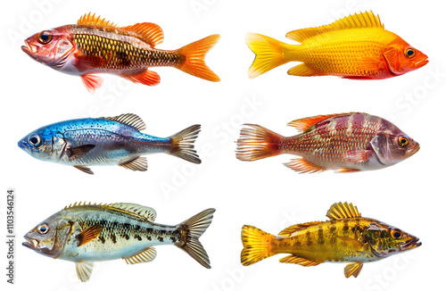 © Asad, Fototapeta premium Colorful Collection of Realistic Fish Species in Detailed Textures for Marine Designs, Transparent PNG