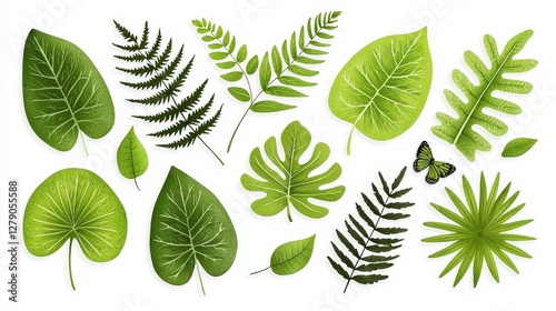 Fototapeta premium Colorful Collection of Various Green Leaves Isolated on White Background for Natural Design