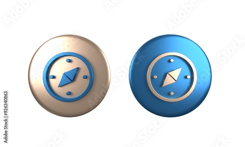 © Kostiantyn, Fototapeta premium Colorful Compass icon isolated on white background. Windrose navigation symbol. Wind rose sign. Circle button. 3D render illustration