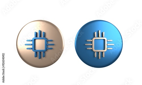 © Kostiantyn, Fototapeta premium Colorful Computer processor with microcircuits CPU icon isolated on white background. Chip or cpu with circuit board. Micro processor. Circle button. 3D render illustration