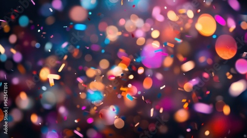 © Rere_Art151, Naklejka premium Colorful Confetti and Bokeh Lights in a Dark Background