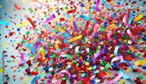 Fototapeta premium Colorful Confetti and Ribbons Explosion.