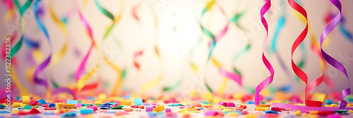 Fototapeta premium Colorful confetti and streamers add to vibrant party backgrounds filled with...