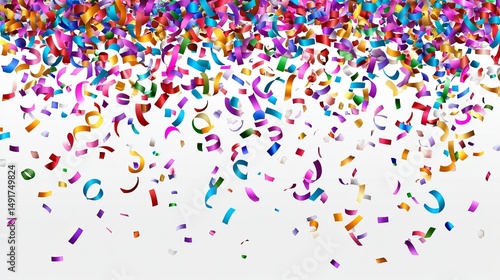 © Alfariha, Obraz premium Colorful confetti falling on a white background (5)