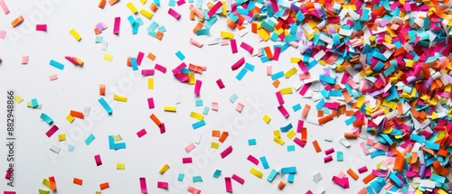 Obraz premium Colorful confetti on a white background, festive and lively slide design