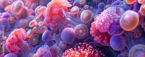 © Viacheslav, Fototapeta premium Colorful coral polyps under the sea, 4K hyperrealistic photo