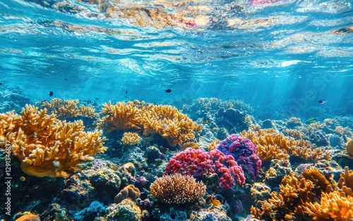 Fototapeta premium Colorful coral reef teeming with exotic marine life and crystal-clear water