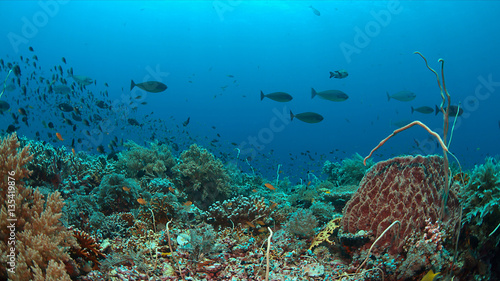 Obraz premium Colorful coral reef with healthy corals and plenty fish.