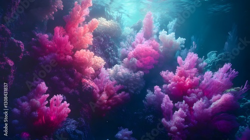 Naklejka premium Colorful Coral Reefs Growing Beautifully Underneath Ocean Waters