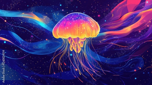 Fototapeta premium Colorful cosmic jellyfish floats amidst a celestial starry backdrop