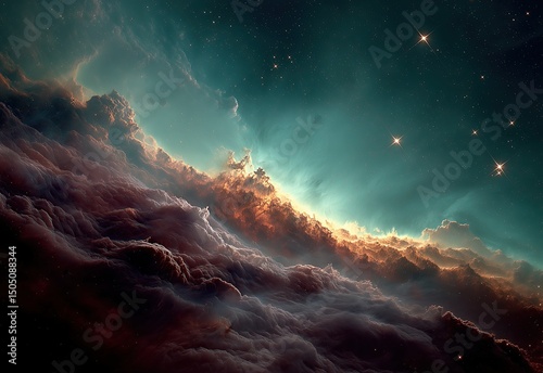 Naklejka premium Colorful cosmic nebula glowing in deep space.