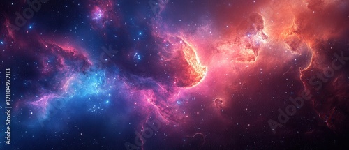 Naklejka premium Colorful Cosmic Nebula with Bright Star Formation in Deep Space