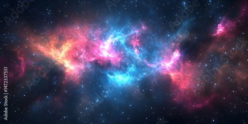 © Nhoeb, Naklejka premium Colorful Cosmic Nebula with Stars and Galactic Clouds in Space
