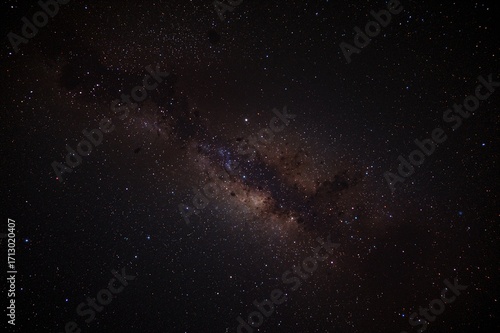 Fototapeta premium Colorful cosmic view featuring a field of stars and a nebula far beyond any planetary system.