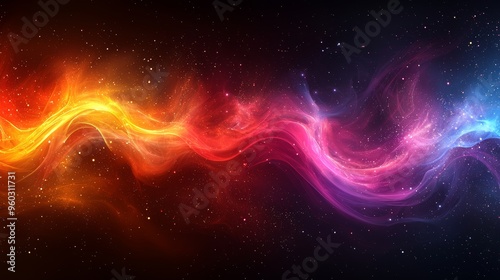 Naklejka premium Colorful cosmic wave pattern in deep space showcasing vibrant hues of orange,...