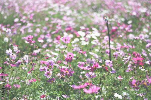 © surachet99, Naklejka premium colorful cosmos flower field background