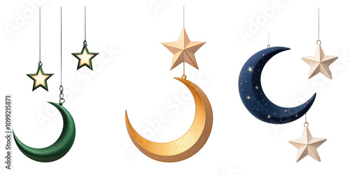 Obraz premium Colorful crescent moons and stars hang together, showcasing a whimsical...