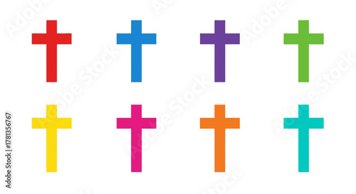 Obraz premium Colorful cross designs on white background in flat style