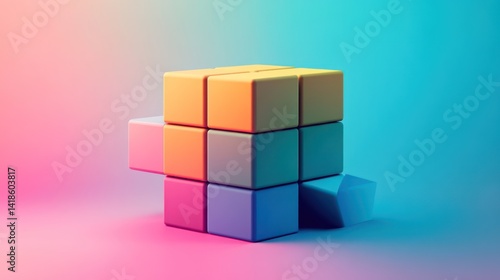 © Egriva, Obraz premium Colorful cube puzzle solving, studio backdrop, vibrant gradient