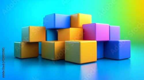 © Artajar, Obraz premium Colorful Cubes Abstract Block Structure Design Concept 3D Render