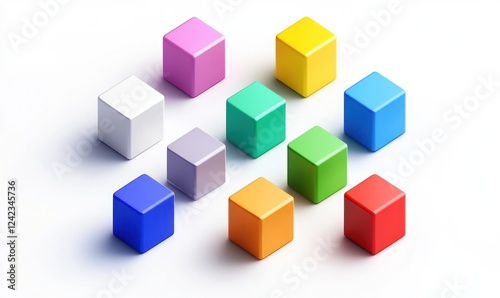 © Alfath, Obraz premium Colorful cubes arranged in a pattern on white background.