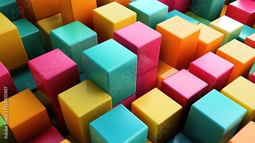 © tiantian, Obraz premium Colorful Cubes as Abstract 3D Geometry Background Illustration: Retro Cube Abstract Background Pattern