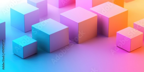 © CHONCHANOK PHOTO, Obraz premium Colorful cubes create a vibrant, abstract design, showcasing geometric forms in a gradient of blue and pink tones.