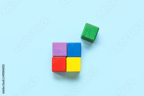 Obraz premium Colorful cubes on blue background. Concept of autistic disorder