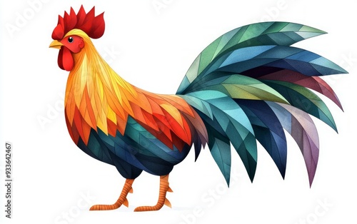 © Bold24, Fototapeta premium Colorful cute rooster drawing illustration on isolated white background