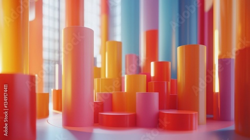 © Enggal Pitoyo, Obraz premium Colorful cylinders, data visualization, office background, abstract chart