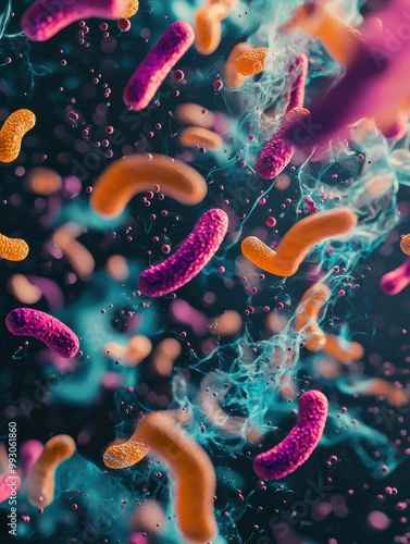 © AssanAI.Studio, Naklejka premium Colorful 3D Bacteria in a Swirling Mass