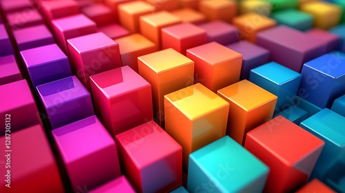 © Poni, Obraz premium Colorful 3D Cubes Abstract Background