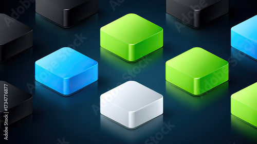 © Volodymyr Hankevych, Obraz premium Colorful 3D Cubes on Dark Background