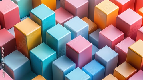 Obraz premium Colorful 3D cubes pattern arranged playfully, featuring vibrant pastel