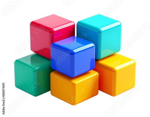 Fototapeta premium Colorful 3D cubes stacked artfully, glossy surfaces