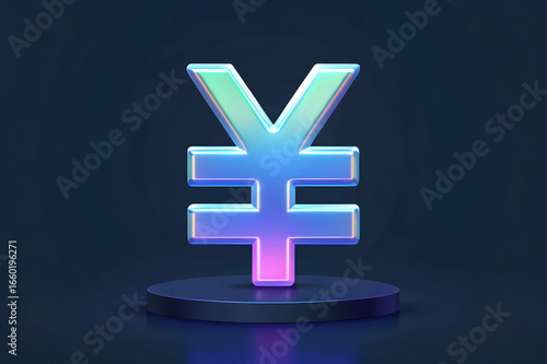 Obraz premium Colorful 3D Holographic Symbol of Japanese Yen Currency on Dark Background