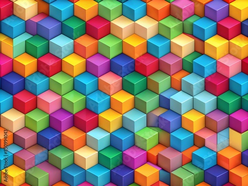 © Adisorn, Obraz premium Colorful 3D Isometric Cubes Seamless Pattern Background.