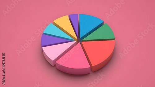© Fairy Art, Obraz premium Colorful 3D pie chart on a solid pastel background.